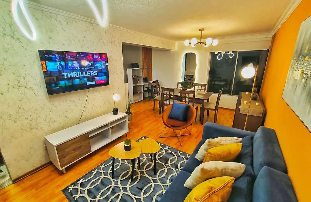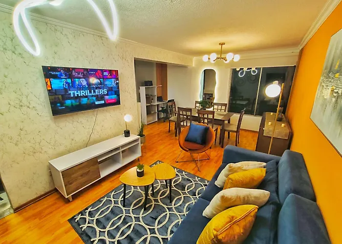 Situated 4.2 km from Guapulo Park, the 85 m² Udla Apartamento Para 6 Personas Frente Al Mall Riocentro Quito provides guests with Wi-Fi for either business or leisure. Private car parking is available on site.
